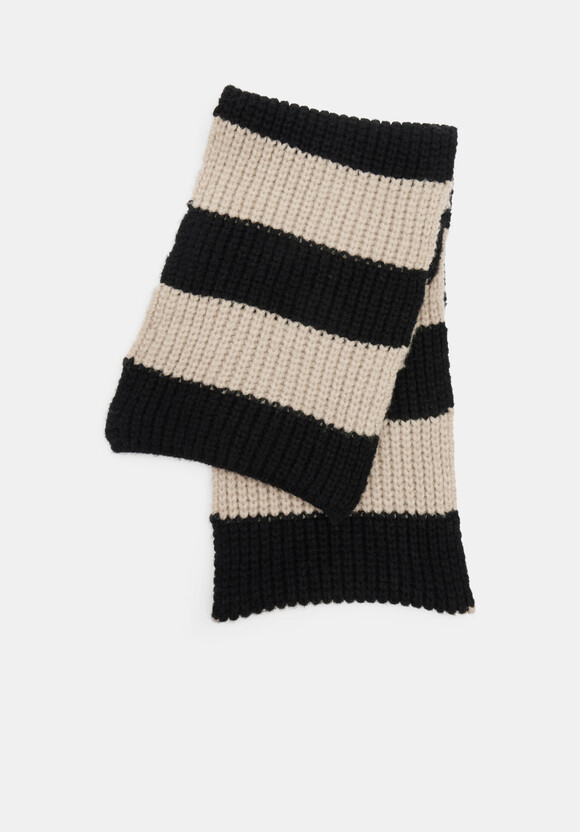 Morgan Knitted Stripe Scarf Black Soft Camel Hush